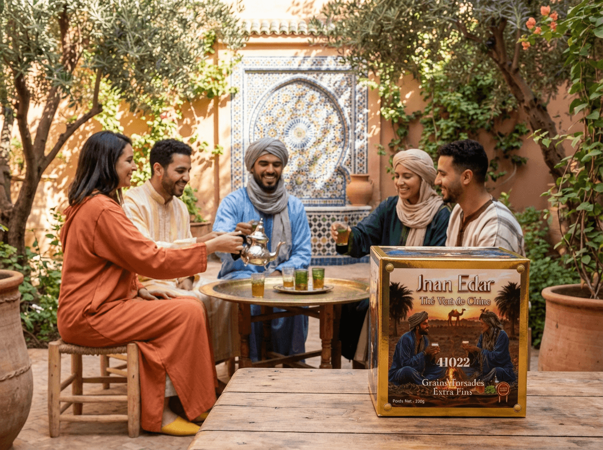 Jnan Edar Thé Vert de Chine 41022 is a fine green tea with a fresh, smooth taste and a light aroma. Packed in a 200 g box, it is ideal for daily tea moments, serving guests, or enjoying hot or iced.