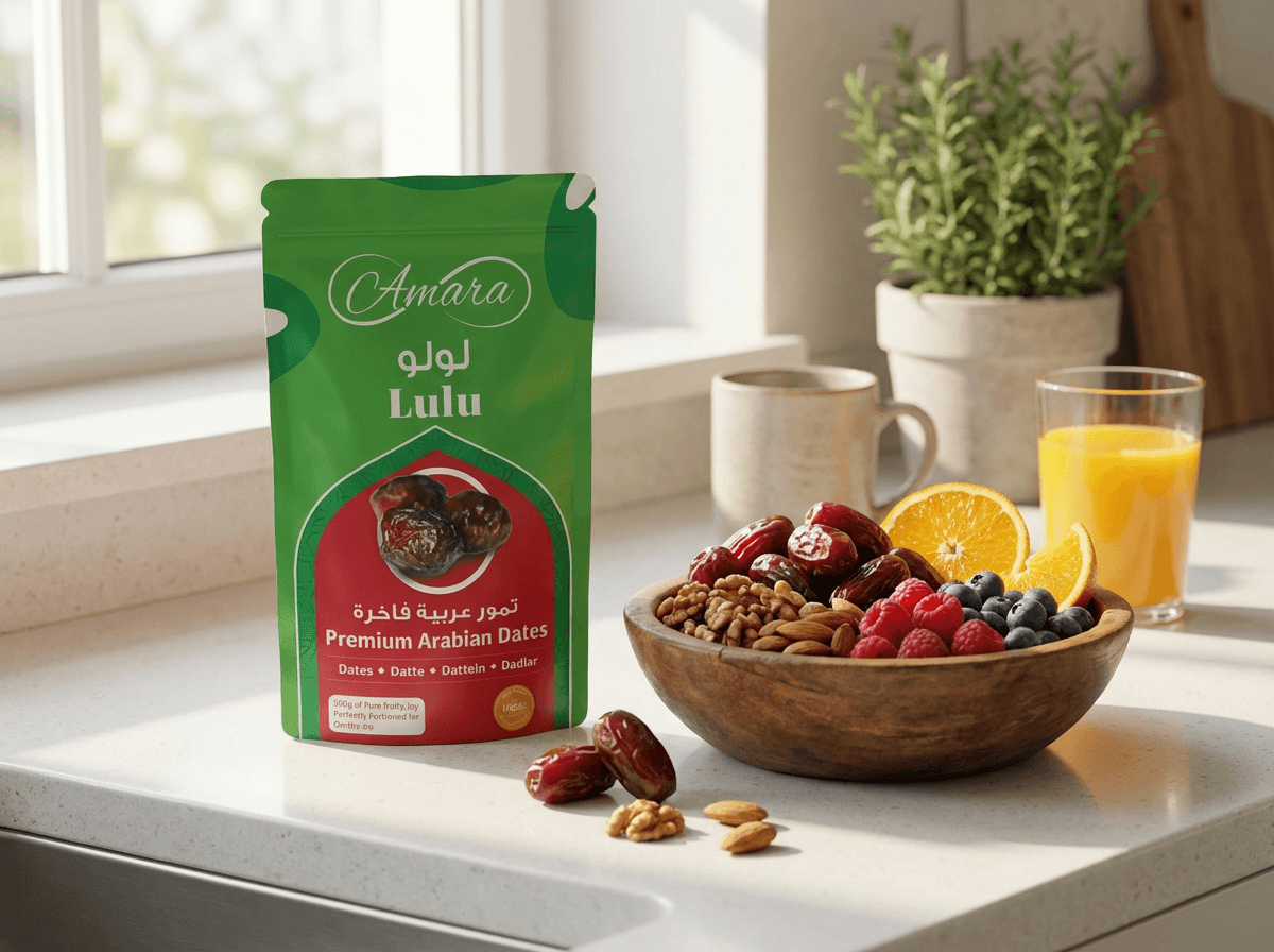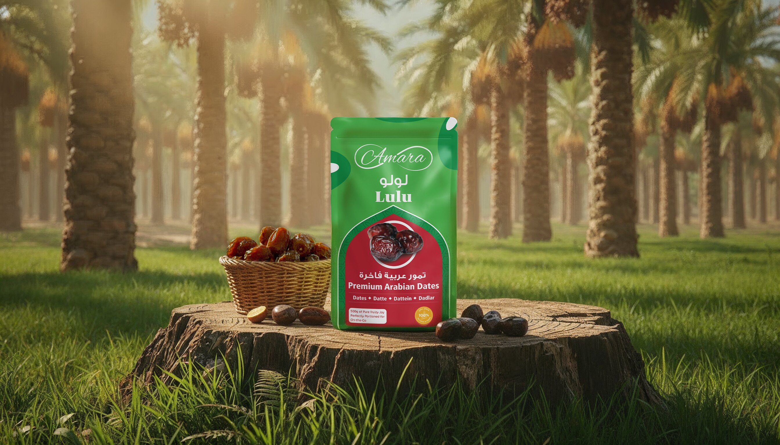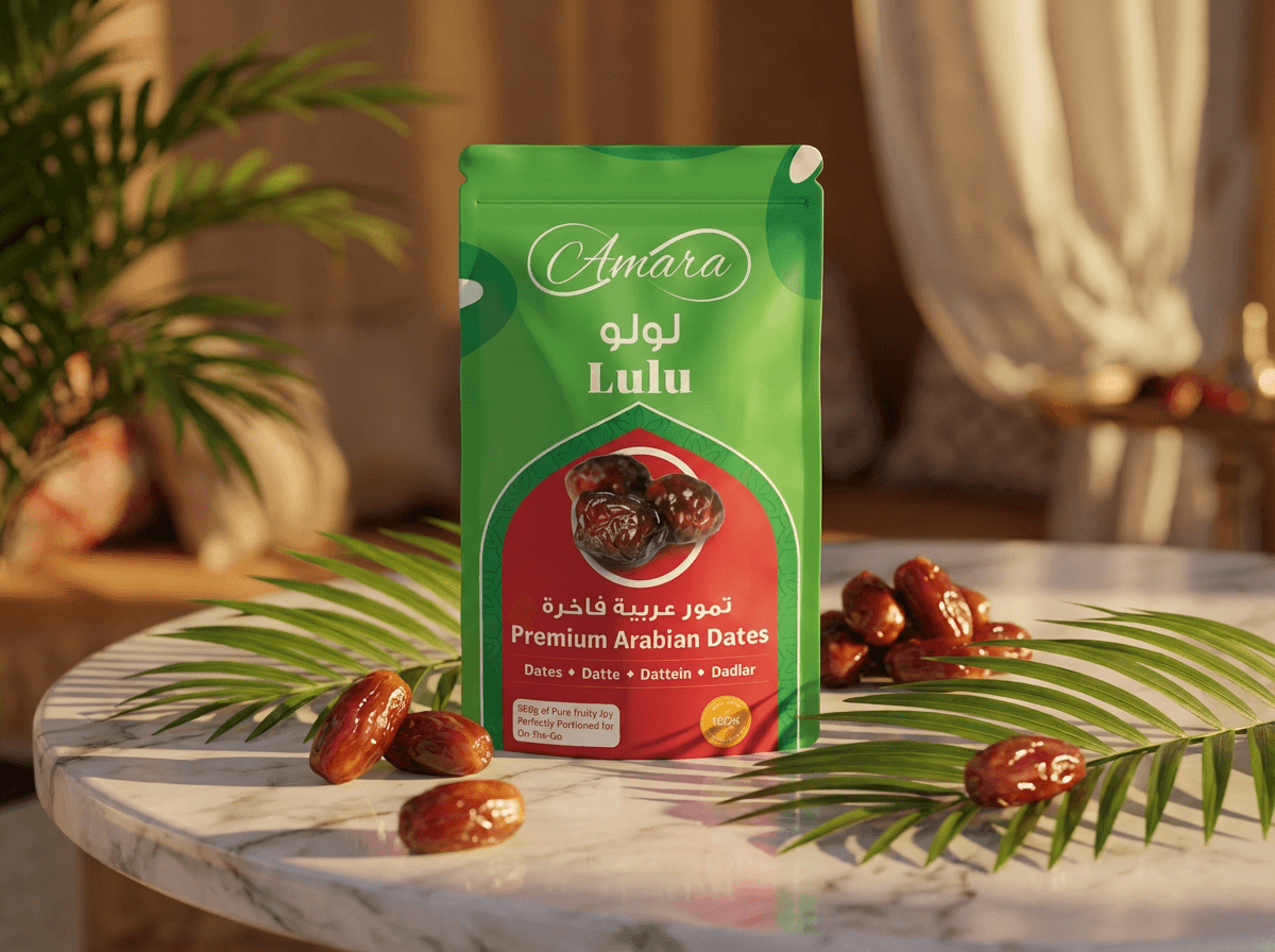 Amara Lulu Premium Arabian Dates are naturally sweet, rich, and soft dates sourced from Arabia. Packed in a convenient 500 g pouch, they are perfect for healthy snacking, sharing, or enjoying on the go.